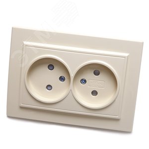 Розетка двухместная б/з,с защитной шторкой,250В, 10А, серия Эрна, слоновая кость Stekker