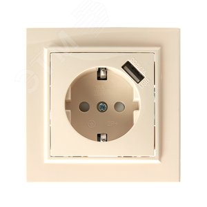 Розетка одноместная с/з с защитной шторкой и с USB, серия Эрна, слоновая кость, Stekker