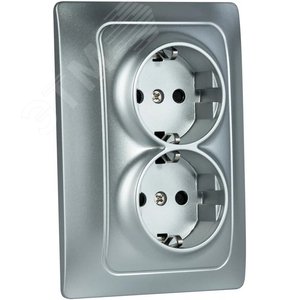 GUSI Bravo МЕХАНИЗМ Розетки двойной с заземлением с защитной шторкой, скрытая установка, 16А, 250В. Цвет серебро