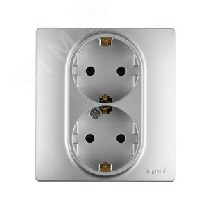 ETIKA Розетка двойная с заземлением со шторками алюминий автоматические зажимы