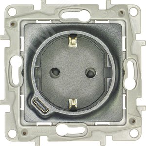 Розетка с заземлением с USB тип C - Etika - со шторками 16А 250В 1500мА 7,5Вт безвинтовые зажимы - антрацит