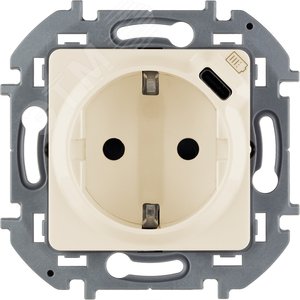 Розетка 2К+З немецкий стандарт 16А 250В со встроенным зарядным устройством USB C 1.5А 5В INSPIRIA слоновая кость