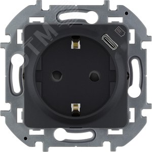 Розетка 2К+З немецкий стандарт 16А 250В со встроенным зарядным устройством USB C 1.5А 5В INSPIRIA антрацит
