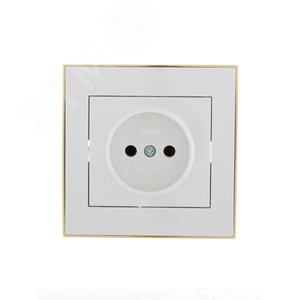Розетка RAIN без заземления керамика белая с боковой вставкой золото