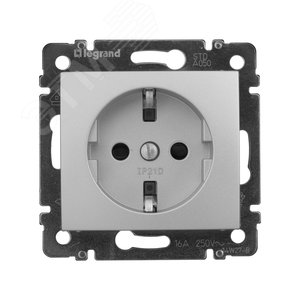 VALENA Розетка с заземлением со шторками в рамку алюминий
