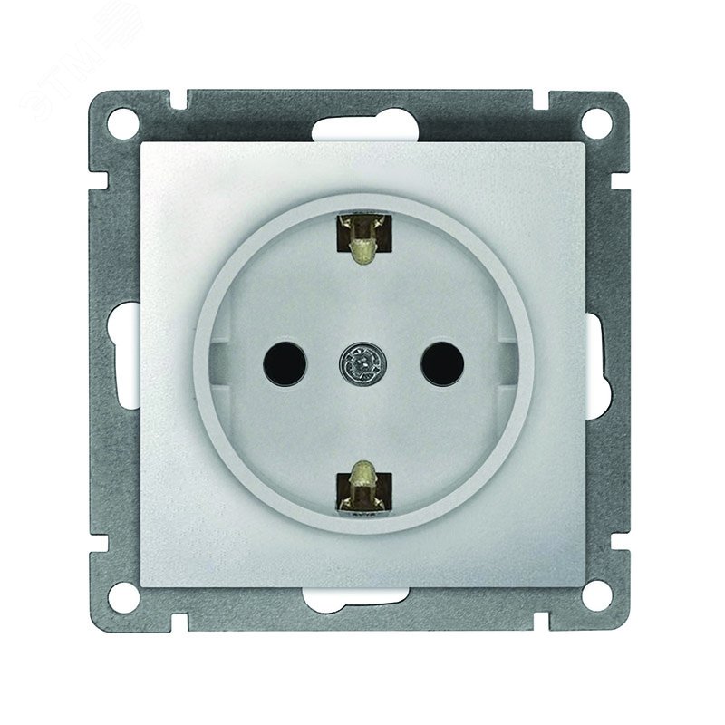 Розетка одноместная серия Афинас/з, с/у, 16А, 220В, серебро (еврослот)