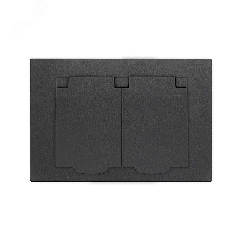 Розетка двухместная с крышкой серия Афина с/з, с/у, 16А, 220В, графит (еврослот)