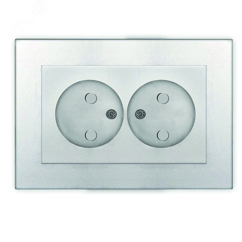 Розетка двухместная серия Афина б/з, с/у, з/ш, 16А, 220В, серебро (еврослот)