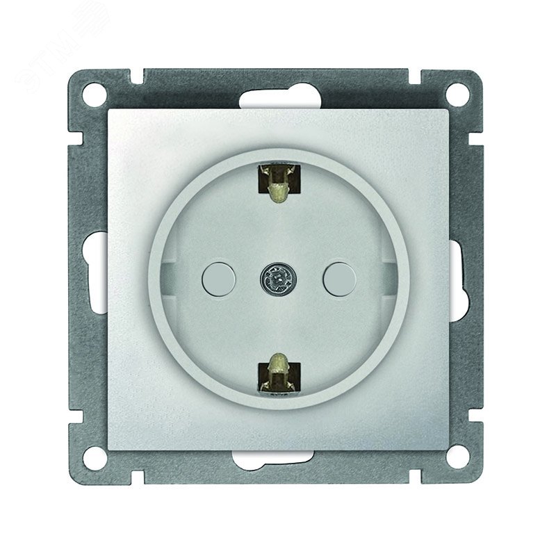 Розетка одноместная серия Афина с/з, с/у, з/ш, 16А, 220В, серебро (еврослот)