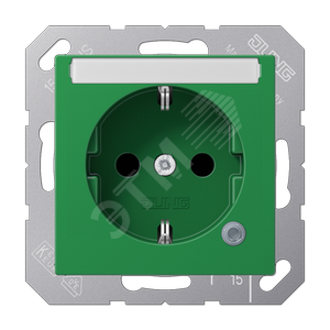 Розетка с полем для надписи 6x46 мм A500 2К+З 16 А 250В~ ударопрочная, зеленая