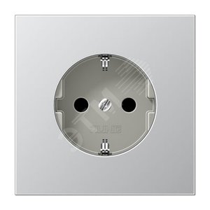 Штепсельная розетка SCHUKO одинарная, с заземлением, с шторками, 16A, 250В (механизм + накладка, без рамки). Серия LS990 Материал- металл Цвет- алю