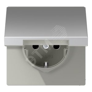 Штепсельная розетка SCHUKO одинарная, с заземлением, с откидной крышкой, 16A, 250В  (механизм + накладка, без рамки). Серия LS990  Материал- металл  Ц JUNG AL1520KL