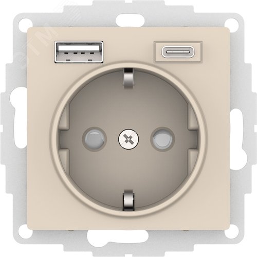 Розетка силовая Systeme Electric (ранее Schneider Electric) серии AtlasDesign 16А (цвет бежевый) с заземлением и шторками с розеткой USB, с двумя разъемами тип А и тип С. Розетка совмещает в себе сразу 3 функции в одном изделии. Удобное и современное решение для дома, офиса и других помещений. Лицевые детали из качественного ABS-пластика, устойчивого к царапинам и УФ-излучению. Заземляющий контакт обеспечивает дополнительную защиту от удара электрическим током. Шторки обеспечивают дополнительную безопасность в доме, где находятся дети. Одно устройство позволяет как подключить бытовые приборы, так и зарядить мобильные устройства.