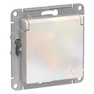Розетка ATLASDESIGN с заземлением со шторками с крышкой 16А IP20 механизм жемчуг