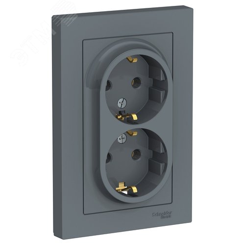 Розетка ATLASDESIGN двойная с заземлением 16А в сборе грифель