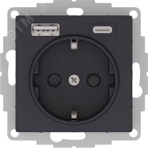 Розетка силовая Systeme Electric серии AtlasDesign 16А (цвет карбон) с заземлением и шторками с розеткой USB, с двумя разъемами тип А и тип С. Розетка совмещает в себе сразу 3 функции в одном изделии. Удобное и современное решение для дома, офиса и других помещений. Лицевые детали из качественного ABS-пластика, устойчивого к царапинам и УФ-излучению. Заземляющий контакт обеспечивает дополнительную защиту от удара электрическим током. шторки обеспечивают дополнительную безопасность в доме, где находятся дети. Одно устройство позволяет как подключить бытовые приборы, так и зарядить мобильные устройства.
