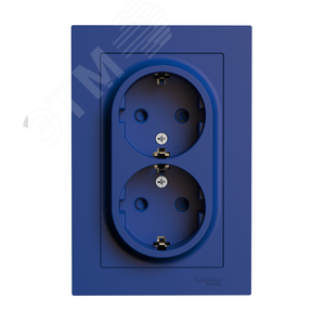 ATLASDESIGN РОЗЕТКА двойная с заземлением со шторками, 16А, в сборе, АКВАМАРИН