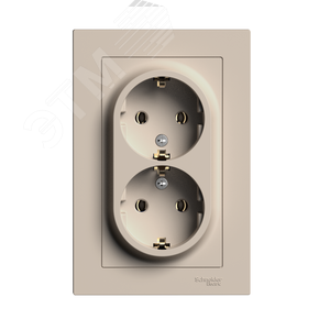 ATLASDESIGN РОЗЕТКА двойная с заземлением, 16А, в сборе, ПЕСОЧНЫЙ