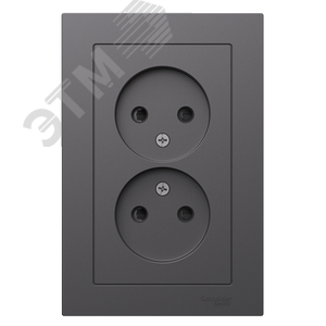 ATLASDESIGN РОЗЕТКА двойная без заземления со шторками,16А, в сборе, БАЗАЛЬТ
