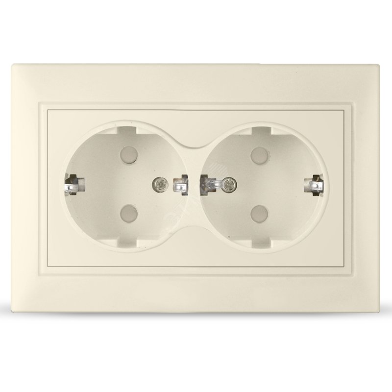 Розетка Севиль 2-ая с заземлением с защитными шторками слоновая кость (ivory)