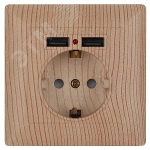 Розетка P+E Schuko со шторками, 16А-250В + 2хUSB, IP20, СУ, Solo, сосна, 4-410-11