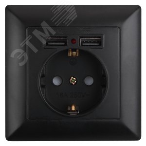 Розетка Intro Solo 4-410-05 с заземлением P+E Schuko со шторками, 16А-250В + 2хUSB, IP20, СУ, антрацит