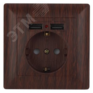 Розетка Intro Solo 4-410-10 с заземлением P+E Schuko со шторками, 16А-250В + 2хUSB, IP20, СУ, венге