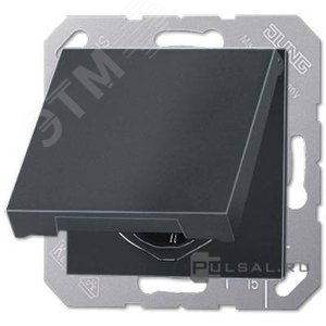 Розетка SCHUKO одинарная, с заземлением, с крышкой, без шторок, 16A, 250В (механизм + накладка, без рамки). Серия- Eco Profi. Материал- термопласт. Ц
