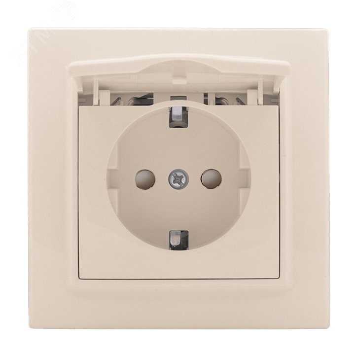Розетка одноместная СП с заземлением Минск с крышкой 16А бежевая с защитными шторками