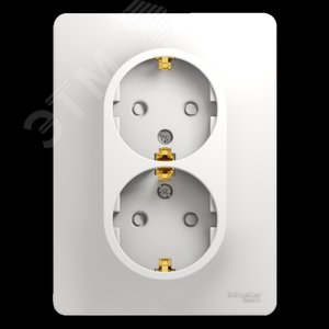 GLOSSA Розетка двойная с заземлением со шторками в сборе белая