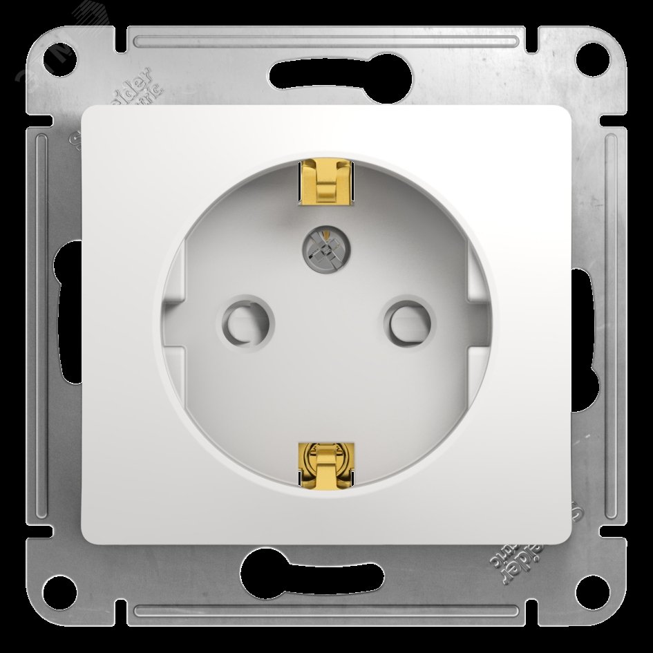 GLOSSA Розетка с заземлением со шторками в рамку белая