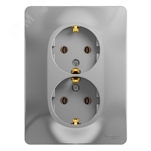 GLOSSA Розетка двойная с заземлением в сборе алюминий