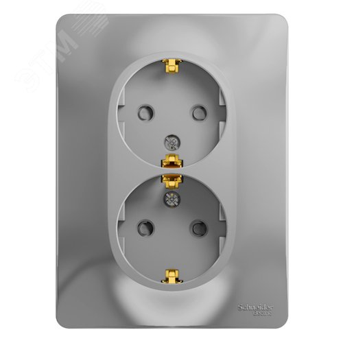 GLOSSA Розетка двойная с заземлением со шторками в сборе алюминий