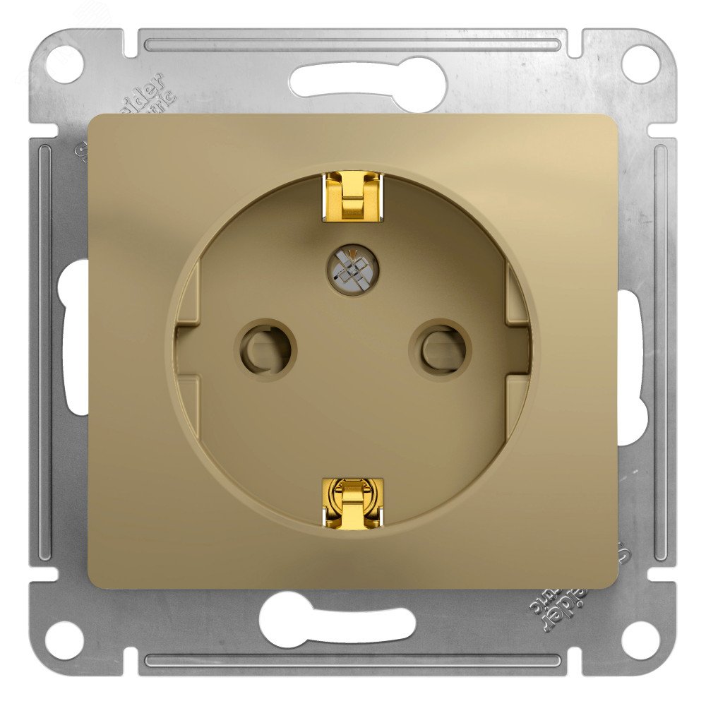 GLOSSA Розетка с заземлением со шторками в рамку титан