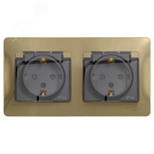Розетка GLOSSA двойная с заземлением со шторками в сборе IP44 титан