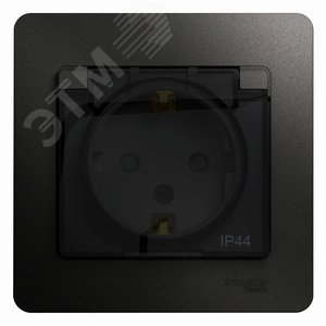 GLOSSA Розетка с заземлением со шторками с крышкой IP44 антрацит в сборе