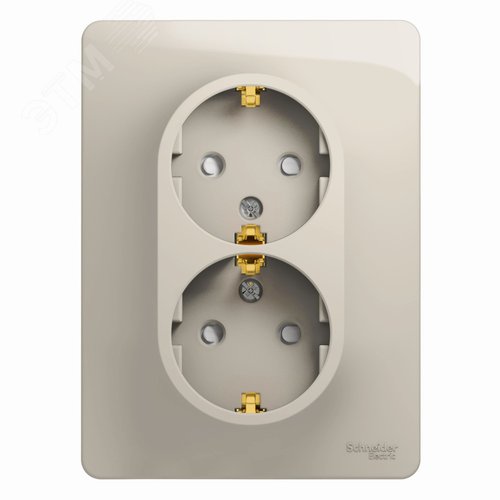 GLOSSA розетка двойная с заземлением со шторками в сборе молочный