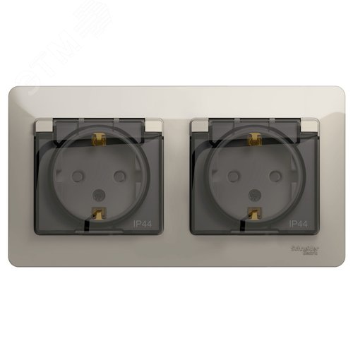Розетка GLOSSA двойная с заземлением со шторками в сборе IP44 молочный
