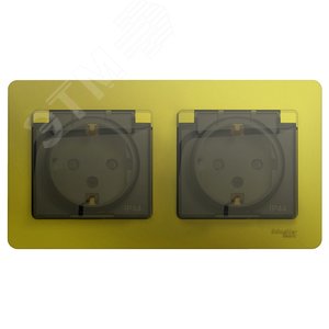 Розетка GLOSSA двойная с заземлением со шторками в сборе IP44 фисташковый