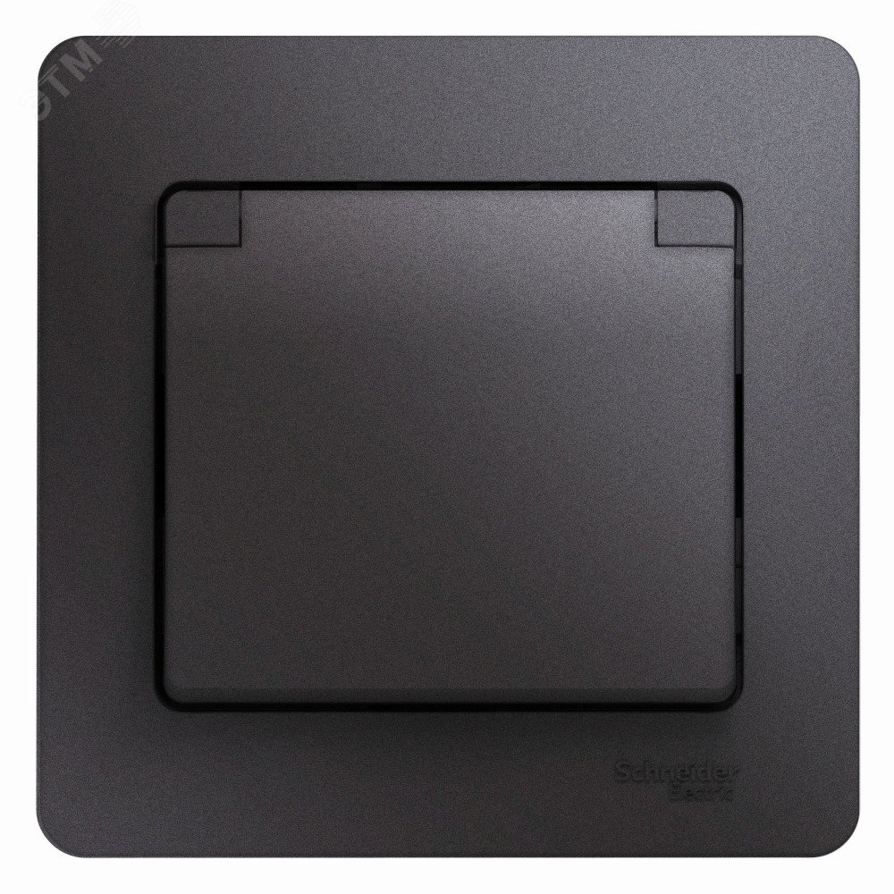 GLOSSA розетка с заземлением со шторками с крышкой в сборе IP20 графит