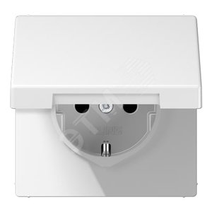 Штепсельная розетка SCHUKO одинарная, с заземлением, с шторками, с откидной крышкой, 16A, 250В  (механизм + накладка, без рамки). Серия LS990  Материа JUNG LS1520KIKLWW
