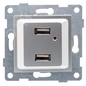 GUSI Ugra механизм розетки USB, двойной, скрытая установка. Цвет серебро.