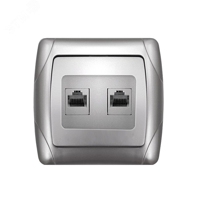 Маргарита розетка двухпортовая компьютерная RJ45, серебро (еврослот)