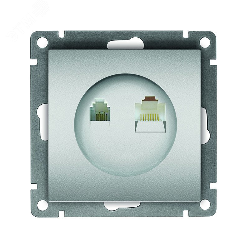 Розетка компьютерная+телефонная серия Афина, с/у, 1А, RJ45, RJ12, серебро (еврослот)