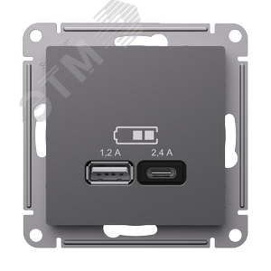 ATLASDESIGN USB РОЗЕТКА А+С, 5В/2,4 А, 2х5В/1,2 А, механизм, БАЗАЛЬТ