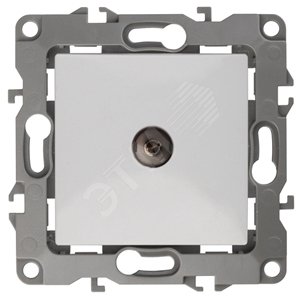Розетка телевизионная одиночная серии Эра 12 скрытой установки механизм цвет белый 12-3101-01. Сделана из поликарбоната. Монтаж в подрозетник производится и на лапки, и на винты. Рамки приобретаются отдельно. Рамки Эра 12: 1 пост 12-5001-хх, 2 поста 12-5002-хх, 3 поста 12-5003-хх, 4 поста 12-5004-хх, 5 постов 12-5005-хх. Рамки Эра 12 Сатин: 1 пост 12-5101-хх, 2 поста 12-5102-хх, 3 поста 12-5103-хх, 4 поста 12-5104-хх, 5 постов - 12-5105-хх (хх - код цвета: 01-белый, 02-слоновая кость, 03-алюминий, 04-шампань, 05-антрацит, 06-чёрный, 07-ольха(белёный дуб-сатин), 08-вишня, 09-дуб, 10-венге, 11-сосна, 21-жёлтый, 22-оранжевый, 23-красный, 24-охра, 25-бордо, 26-лайм, 27-зелёный, 28-голубой, 29-синий).