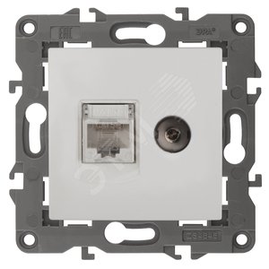 Розетка телевизионная + интернет серии Эра Elegance цвет белый 14-3110-01. Рамки приобретаются отдельно. Рамки Эра Elegance ПЛАСТИК: 1 пост 14-5001-хх, 2 поста 14-5002-хх, 3 поста 14-5003-хх, 4 поста 14-5004-хх, 5 постов 14-5005-хх, СТЕКЛО: 1 пост 14-5101-хх, 2 поста 14-5102-хх, 3 поста 14-5103-хх, 4 поста 14-5104-хх, МЕТАЛЛ: 1 пост 14-5201-хх, 2 поста 14-5202-хх, 3 поста 14-5203-хх, 4 поста 14-5204-хх, ДЕРЕВО: 1 пост 14-5301-хх, 2 поста 14-5302-хх, 3 поста 14-5303-хх, 4 поста 14-5304-хх (хх - код цвета: 00-прозрачный, 01-белый, белёный дуб, 02-слоновая кость, 03-алюминий, 04-шампань, 05-чёрный, чёрное дерево, 07-ясень, 09-дуб, 10-венге, 11-клён, 14-медь, 21-жёлтый, 22-оранжевый, 23-красный, 25-бордо, 26-лайм, 27-зелёный, 28-голубой, 29-синий, 30-розовый, 31-мокко, 32-серый, 41-сталь, 42-титан).