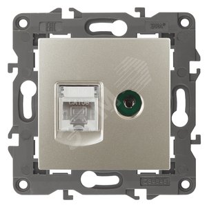 Розетка телевизионная + интернет серии Эра Elegance цвет шампань 14-3110-04. Рамки приобретаются отдельно. Рамки Эра Elegance ПЛАСТИК: 1 пост 14-5001-хх, 2 поста 14-5002-хх, 3 поста 14-5003-хх, 4 поста 14-5004-хх, 5 постов 14-5005-хх, СТЕКЛО: 1 пост 14-5101-хх, 2 поста 14-5102-хх, 3 поста 14-5103-хх, 4 поста 14-5104-хх, МЕТАЛЛ: 1 пост 14-5201-хх, 2 поста 14-5202-хх, 3 поста 14-5203-хх, 4 поста 14-5204-хх, ДЕРЕВО: 1 пост 14-5301-хх, 2 поста 14-5302-хх, 3 поста 14-5303-хх, 4 поста 14-5304-хх (хх - код цвета: 00-прозрачный, 01-белый, белёный дуб, 02-слоновая кость, 03-алюминий, 04-шампань, 05-чёрный, чёрное дерево, 07-ясень, 09-дуб, 10-венге, 11-клён, 14-медь, 21-жёлтый, 22-оранжевый, 23-красный, 25-бордо, 26-лайм, 27-зелёный, 28-голубой, 29-синий, 30-розовый, 31-мокко, 32-серый, 41-сталь, 42-титан).