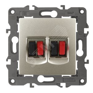 Розетка двойная аудио стерео серии Эра Elegance цвет шампань 14-3112-04. Рамки приобретаются отдельно. Рамки Эра Elegance ПЛАСТИК: 1 пост 14-5001-хх, 2 поста 14-5002-хх, 3 поста 14-5003-хх, 4 поста 14-5004-хх, 5 постов 14-5005-хх, СТЕКЛО: 1 пост 14-5101-хх, 2 поста 14-5102-хх, 3 поста 14-5103-хх, 4 поста 14-5104-хх, МЕТАЛЛ: 1 пост 14-5201-хх, 2 поста 14-5202-хх, 3 поста 14-5203-хх, 4 поста 14-5204-хх, ДЕРЕВО: 1 пост 14-5301-хх, 2 поста 14-5302-хх, 3 поста 14-5303-хх, 4 поста 14-5304-хх (хх - код цвета: 00-прозрачный, 01-белый, белёный дуб, 02-слоновая кость, 03-алюминий, 04-шампань, 05-чёрный, чёрное дерево, 07-ясень, 09-дуб, 10-венге, 11-клён, 14-медь, 21-жёлтый, 22-оранжевый, 23-красный, 25-бордо, 26-лайм, 27-зелёный, 28-голубой, 29-синий, 30-розовый, 31-мокко, 32-серый, 41-сталь, 42-титан).