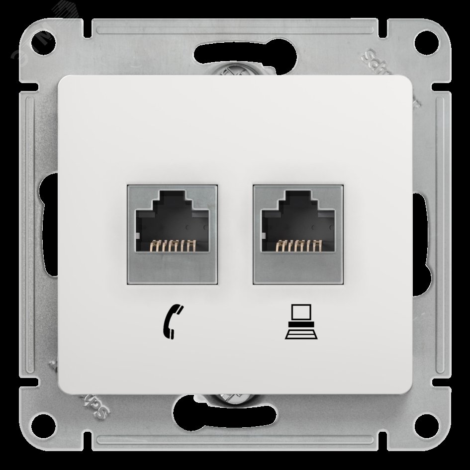 GLOSSA Розетка телефон/компьютер RJ11+RJ45 категория 5е в рамку белая